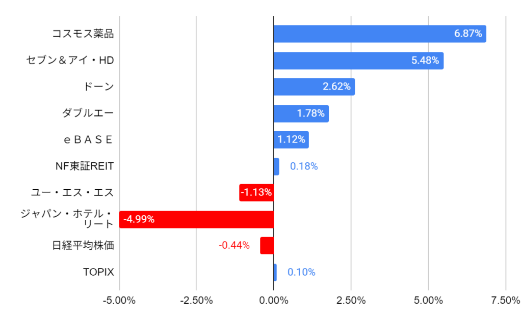 - コスモス薬品: +6.87%